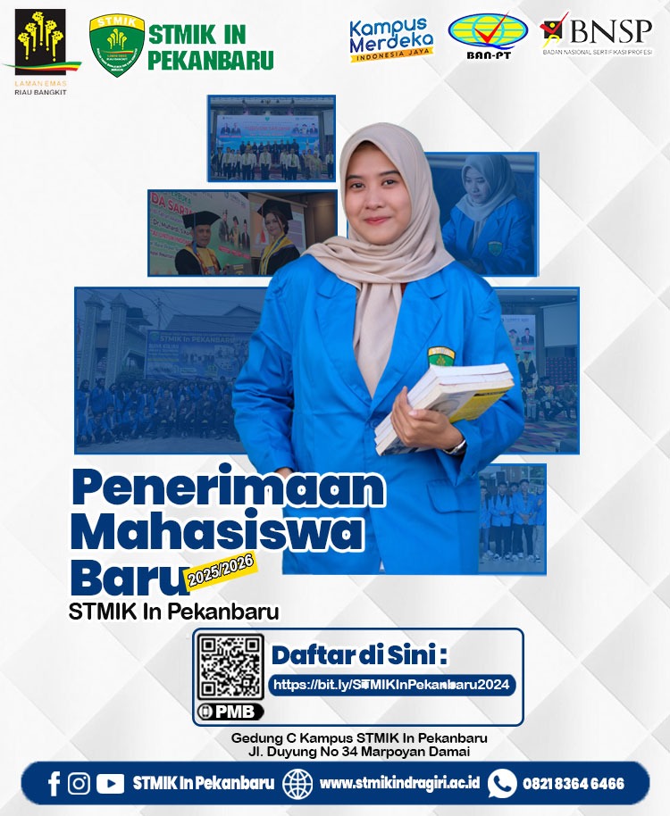 Telah dibuka kembali pendaftaran calon mahasiswa baru! Jangan lewatkan kesempatan emas untuk meraih masa depan cerah di STMIK In Pekanbaru. Kami membuka pintu lebar bagi Anda yang ingin mengembangkan potensi diri dan meraih gelar sarjana impian. Dengan lingkungan belajar yang kondusif, dosen-dosen berpengalaman, dan fasilitas modern, STMIK In Pekanbaru siap mengantarkan Anda menuju kesuksesan. Jadilah bagian dari generasi cerdas dan inovatif yang akan membawa perubahan positif bagi bangsa. Daftar sekarang dan mulailah perjalanan meraih impian Anda bersama STMIK In Pekanbaru! info pendaftaran kunjungi link berikut https://bit.ly/STMIKINPEKANBARU